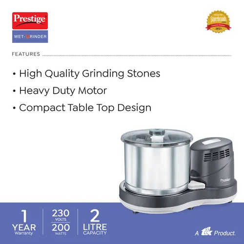 High Quality Grinding Stones, Stainless Steel Drum Compact table top design Fast and consistent grinding,Attractive designer body 2 litre capacity and 200 watts.